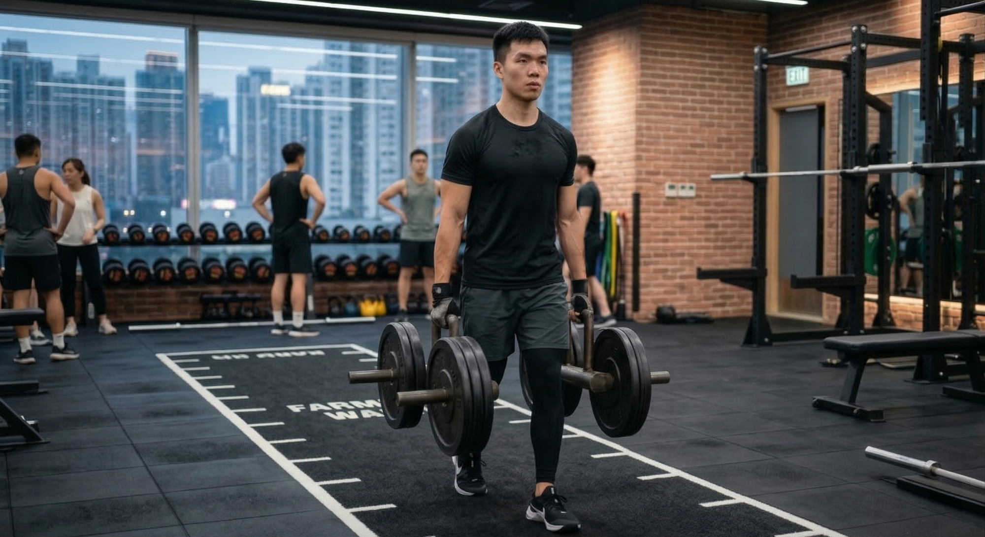 Hyrox中的「農夫走路」和「拉雪橇」項目非常考驗握力。在訓練日加入3組45秒的重負荷農夫走路,能有效減少比賽後半段的無力感。